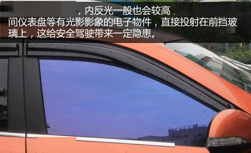 所谓内反光率嘛,就是人在车内观察到的光线反射情况。这个数值越大,车内玻璃面反射越强,对驾驶员视线影响更大。 而当内反光率超越20%时,就会对一些特殊情况下的行车产生较大的影响,比如雨天、清晨和夜晚。