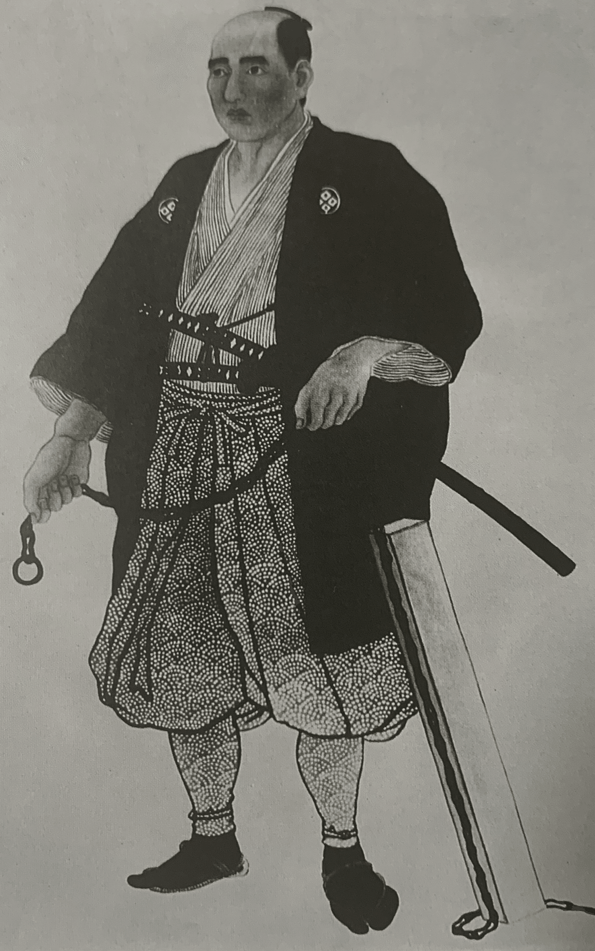 間宮林蔵(1780〜1844) 間宮林蔵 日本画家・松岡映丘が1910年(明治43)に描いた間宮林蔵の若き日の肖像画。袴と脚絆(きゃはん)が一つになった「裁着袴」を着用している。林蔵は、江戸時代後期の探検家で「間宮海峡」を発見したことで知られています。当時、樺太(サハリン)は、島か半島か、世界的にも、まだ、判明しておらず、それを世界に先駆けて、探索し、その実態を明らかにしたのが間宮林蔵です。世界地図に唯一名を残す日本人です。