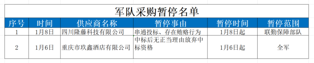 图源:包图网 电子科技大学、成都信息工程大学因违规串通投标,刚刚被军队采购网“曝光”,同时被网络空间部队暂停采购资格3年。科创四川1月10日在军队采购网“监督管理”版块发现,2025年最新公布的因在军队采购项目中存在“违规”名单,电子科技大学、成都信息工程大学等川渝地区已有13家单位因违规被“军方”处罚。 违规串通投标 2所高校被暂停采购资格3年 科创四川梳理发现,在军队采购网公布的“在军队采购项目中存在违规”的企业名单中,电子科技大学、成都信息工程大学赫然在列。 电子科技大学因串通投标,被网络空间部队后勤部采购和资产管理处依据相关规定,3年内禁止参与网络空间部队采购,禁止时段为2025年1月2日至2028年1月2日。在禁止期内,法定代表人曾勇控股或管理的其他企业受限,授权代表宋欢欢不得代理其他供应商参加。 图源:军队采购网 电子科技大学成立于1956年,原名成都电讯工程学院。学校1960年被中共中央列为全国重点高等学校,1961年被中共中央确定为七所国防工业院校之一,1988年更名为电子科技大学,1997年被确定为国家首批“211工程”建设的重点大学,2001年进入国家“985工程”重点建设大学行列,2017年进入国家建设“世界一流大学”A类高校行列,2022年入选国家第二轮“双一流”建设高校名单。 电子科技大学,图源红星新闻 科创四川注意到,通告所涉及的法人代表人曾勇,目前已卸任电子科技大学校长一职。公开资料显示,曾勇出生于1963年10月,毕业于清华大学管理科学与工程专业。曾勇在2001年11月至2013年12月任电子科技大学经济与管理学院院长,2015年4月起,任电子科技大学副校长。2018年10月,曾勇出任电子科技大学校长一职,2024年2月已卸任。 成都信息工程大学同样因串通投标,面临与电子科技大学相同时长、相同范围的禁令。在禁止期内,法定代表人余敏明控股或管理的其他企业受限,授权代表不得代理其他供应商参加。 图源:军队采购网 成都信息工程大学是四川省人民政府和中国气象局、国家统计局共建、四川省重点发展的省属普通本科院校。学校创建于1951年,1956年改制为中央气象局成都气象学校;1978年升格为本科院校——成都气象学院;2000年学校由中国气象局划转四川省,更名为成都信息工程学院;2001年原隶属国家统计局的四川统计学校整体并入;2015年更名为成都信息工程大学。学校是国家首批学士学位授权高校、国家中西部基础能力建设工程高校、国家首批“卓越工程师教育培养计划”试点院校、四川省首批“一流学科”建设高校,是国际CDIO工程教育组织正式成员,全国气象科教融合创新联盟副主任委员单位,四川省网络空间安全协会理事长单位。 成都信息工程大学,图源:学校官网 科创四川注意到,通告所涉及的法人代表人余敏明,目前已任西南交通大学党委书记。公开资料显示,余敏明出生于1965年10月,曾任电子科技大学党委常委、副校长(其间,挂职云南丽江市委常委、副市长),成都信息工程大学党委副书记、校长。2017年至今,任西南交通大学党委书记。根据“在禁止期内,法定代表人余敏明控股或管理的其他企业禁止参加上述范围军队(网络空间部队)采购活动”,不难看出受波及的学校不只是成都信息工程大学。 串通投标、虚假投标、贿赂等 11家川渝企业违规被处理 成都锦江电子系统工程有限公司因串通投标,被网络空间部队后勤部采购和资产管理处依据相关规定,禁止3年内参与网络空间部队采购,禁止时段为2025年1月2日至2028年1月2日。在禁止期内,法定代表人孙伟彪控股或管理的其他企业受限,授权代表卢斌不得代理其他供应商参加。公开资料显示,成都锦江电子系统工程有限公司位于成都市新都区,注册资本10000万,是专业从事军民用地面雷达等电子系统工程产品研发、生产的高新技术企业。公司前身是国家“一五”期间的156项重点工程之一,是国内研制、生产大型地面雷达的军工骨干企业,是我国首批机电产品出口基地企业。 成都网安科技发展有限公司因串通投标,被网络空间部队后勤部采购和资产管理处依据相关规定,禁止3年内参与网络空间部队采购,禁止时段为2025年1月2日至2028年1月2日。在禁止期内,法定代表人陈建蜀控股或管理的其他企业受限,授权代表陈芳不得代理其他供应商参加。公开资料显示,成都网安科技发展有限公司成立于2001年,总部位于成都,注册资本1121.211万,是一家军民融合产业领域的高新技术企业,也是国家级专精特新“小巨人”企业。通过不断地自主创新,网安科技掌握了诸多核心技术并参与了多项国家标准制定,是国内领先的网络安全软件产品研发企业。 此外,成都市林锐达科技有限公司因存在串通投标行为,被禁止3年内参加联勤保障部队采购,禁止期从2025年1月6日起至2028年1月6日。成都通和泰业科技有限公司因虚假投标,被禁止2年内参加联勤保障部队采购,禁止期从2025年1月3日至2027年1月3日。四川恒进依科技有限公司、四川禹信安电子科技有限公司、成都威尔奇空间信息技术有限公司、四川万兴测绘服务有限公司等,均被禁止3年内参与网络空间部队采购,禁止时段统一为2025年1月2日至2028年1月2日。重庆噎鸣互联网信息咨询有限公司因同样问题,被禁止2年内参加网络空间部队采购,禁令自2025年1月2日生效至2027年1月2日。上述公司的法定代表人及授权代