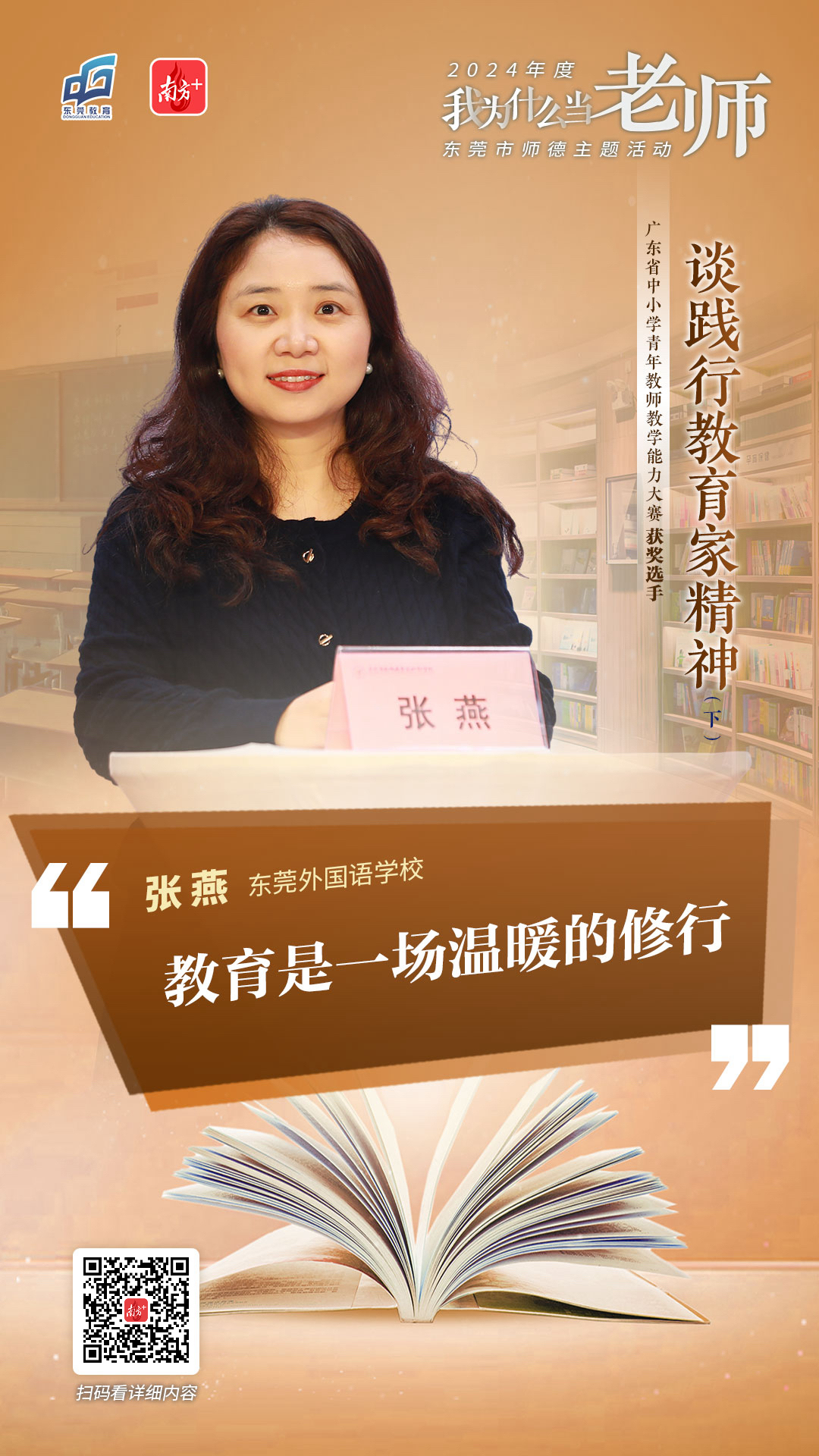 【编者按】 围绕立德树人根本任务,由广东省总工会、广东省教育厅主办的第四届广东省中小学青年教师教学能力大赛(下称“省青赛”)顺利举办。历经激烈角逐,东莞青年教师共斩获60项省级奖项,其中,一等奖获得者共34人,数量名列全省第二。 1月16日12:00,2024年度“我为什么当老师”第十二期(总第三十八期)上线南方+。本期视频继续对话省青赛一等奖获奖老师,围绕教育家精神内涵中的“躬耕态度、仁爱之心、弘道追求”三个关键点,6位老师继续用赛场竞技的方式展示各自的风采。 南方+二次梳理视频,一起看青年教师们如何以言行诠释“教育家精神”,倾听他们的真知灼见,一同畅谈思考。