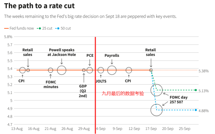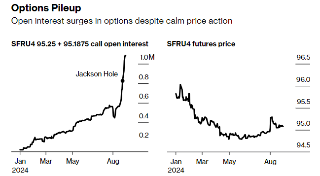 财联社9月5日讯(编辑 潇湘)有迹象显示,利率期权市场的交易员近日大幅加大了对美联储本月将直接降息50个基点的押注,这反映出人们越来越多地猜测决策者将采取积极行动,以防止经济下滑。 与有担保隔夜融资利率(SOFR)挂钩的期权显示,在9月13日到期的一些看涨期权合约中,未平仓合约数量(即交易商持有的头寸数量)激增。该合约将在美联储9月利率决议发布前的五天到期。 如果本周五的非农就业报告和下周的CPI指数显示劳动力市场和通胀降温,足以证明有理由更迅速地采取宽松政策,那么这些头寸就会得到回报。 事实上,我们在周初就曾介绍过,美联储本月降息前有三道数据“大考”,分别是本周三的美国7月JOLTs职位空缺数;本周五的美国8月非农就业数据;以及下周三的美国8月CPI数据。而在隔夜率先出炉的7月JOLTs报告显示职位空缺数大幅下滑后,围绕美联储本月降息50个基点的预期已经出现了迅速升温。 芝商所的美联储观察工具显示,在隔夜JOLTS报告发布后,降息50个基点的几率一度跃升至50%,此后虽然逐渐回落到了45%,但仍要明显高于前一天的38%。 光是一道数据,就已令25个基点和50个基点降息概率几乎变为了五五开,这无疑使得在接下来的两道“数据大考”(尤其是最为重要的非农数据)登场前,围绕美联储降息的悬念彻底迭起。 50基点降息不再遥不可及 摩根大通资产管理公司投资组合经理Priya Misra表示,“劳动力市场已经放缓,现在已经引起了美联储的注意。鉴于联邦基金利率目标区间目前仍处于5.25%-5.5%的罕见高位区间,而美国经济正在放缓,同时货币政策与经济之间的滞后期又是出了名的长且多变,我认为最初以50个基点幅度降息的理由非常充分。” 从债券市场的表现看,不少交易员近来显然已经为美联储持续降息做好了准备。随着短端收益率大幅回落,周三2年期/10年期美债收益率已彻底结束了倒挂。摩根大通的调查发现,其客户近来加大了看涨国债的押注,并减少了空头头寸。 在过去20多年的历史上,美联储在新冠疫情、全球金融危机和互联网泡沫引发的市场崩盘后,都曾降息过50个基点或更多。当然,至少就目前来看,类似的局势紧迫感还没有体现,因为美国经济仍在增长,美股即使在上月初短暂下跌之后,也仍未比今年的峰值低太多。 但在美联储主席鲍威尔于杰克逊霍尔央行年会发表讲话后,类似押注50个基点降息幅度的期权交易确实有所增加。和其他几位美联储同仁相比,鲍威尔听上去似乎更愿意在就业形势迅速恶化的情况下,采取更激进的手段。 当然,交易员们最近几年曾因过早押注美联储的转变而吃过大亏,因此许多人仍对相关风险保持警惕。例如,在2023年底,债市曾因预期美联储将在今年年初开始降息而强劲反弹,但当经济表现出令人惊讶的强劲时,这些涨幅就烟消云散了。 野村证券美国利率策略主管Jonathan Cohn表示,“市场对9月首次降息是25个基点还是50个基点存在分歧。这几乎完全取决于非农就业报告的结果。如果在失业率和裁员方面达到了某些门槛,那么降息50个基点是绝对有可能的。”