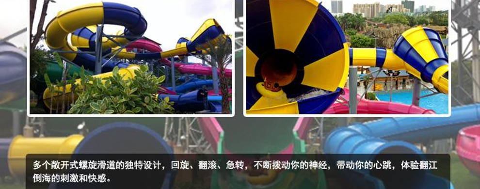 翻江倒海 多个敞开式螺旋滑道的独特设计,回旋、翻滚、急转,不断拨动你的神经,带动你的心跳,体验翻江倒海的刺激和快感。