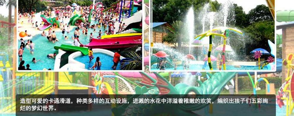 五彩梦幻池 造型可爱的卡通滑道,种类多样的互动设施,迸溅的水花中洋溢着稚嫩的欢笑,编织出孩子们五彩绚烂的梦幻世界。
