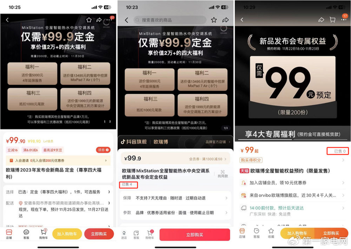 在日前智能家居企业欧瑞博举办的2023战略新品发布会上,欧瑞博对外发布新品Mix Station——全新储能式热水中央空调。 按照欧瑞博官方说法,Mix Station通过智能AI与新能源热泵技术的融合,实现中央空调、热水器、地暖的三机合一,同时满足用户对制冷、供暖、生活热水的需求。 但Mix Station标准系统版:6P冷暖热一体机+5台室内机+安装辅材+5台智能中控屏高达59999元的售价,以及忽略了国内南北方城市冬季气温存在较大差异,让不少消费者吐槽Mix Station“太贵了”,产品缺乏性价比。 来自北京的消费者杜磊(化名)告诉DoNews,看完欧瑞博新品发布会后,原本想给东北的父母以及海南的岳父岳母家分别订购一台。但因东北冬季普遍采用集中供暖,室内温度可达到25度以上,海南冬季气温更高,根本无须购置Mix Station。而且即便三室两厅中央空调+热水器加起来可能还不到2万元,欧瑞博这一新品实在是高攀不起。 如杜磊所言,新品发布会结束后,欧瑞博在京东、淘宝天猫、京东等电商平台官方旗舰店迅速上架这一产品。但从目前电商的反馈来看,该款产品销售遇冷。新品发布24小时后,抖音、淘宝天猫分别显示已售4和已售0。