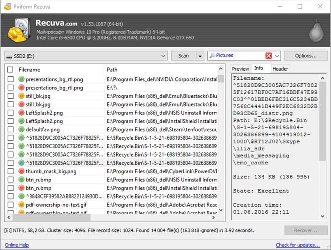 在我们的 Windows 10 最佳免费数据恢复软件列表中排名第二的是 Recuva。该软件由 Piriform(CCleaner 的制造商)开发,允许用户从外部驱动器、硬盘驱动器、存储卡和 DVD/CD 中检索丢失或意外的文件。 Recuva 与几乎所有 Windows 版本兼容,包括 Windows 7/8/8.1/10/ Vista 和 XP 以及 2008/2003 服务器。它还提供便携式版本,可以恢复您的音乐、音频、视频文件、图片和其他重要文档。 它还提供便携式版本,可以恢复您的音乐、音频、视频文件、图片和其他重要文档。 Recuva 的主要特点: 使用这个最好的免费数据恢复程序,您可以轻松恢复文件,包括音频、视频、图像和其他文档。 它配备了先进的深度扫描模式,有助于对驱动器进行彻底扫描,以查找深埋的文件。 Recuva 与所有 Windows 操作系统兼容。 该软件支持内部和外部驱动器恢复。 该软件有一个非常简单和干净的用户界面。 3. 盘钻