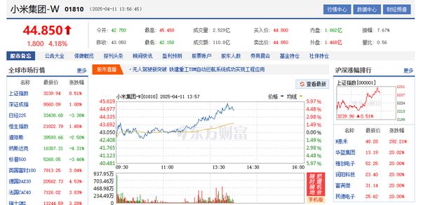 4月11日,CNMO关注到,小米当天股价大涨,涨幅一度超过4%。截止发稿前,小米股价最高已超过45港元,成交额111.7亿,市值约为1.16万亿港元(约合人民币1.09万亿)。 小米公司 近期,由于外部环境和其他部分事件的影响,小米集团的股价出现了大幅度波动。4月7日,全球股市陷入黑色星期一,美指期货、欧洲、日韩以及国内股市全面暴跌。当天,小米股价报收35.8港元,下跌10.1港元,跌幅高达22%,较3月高点59.45港元已跌近40%,单日缩水超2600亿港元,总市值重回万亿港元以下。 不过,如今,随着利空因素逐渐被消化,小米集团的股价也重新走上了上坡路,只是和59.45港元的高点相比仍然有不小距离。 小米集团股价 值得注意的是,小米集团股价的上涨和小米汽车业务密切相关。数据显示,小米汽车上市一年多来,已经累计产生了超过43万份的锁单订单。然而,由于小米暂时只有一家北京汽车工厂,产能不足,当前的交付量大约为21.6万辆左右,理论上小米汽车仍然有接近22万份的积压未交付订单。如果小米汽车的产能没有快速提升的话,小米可能需要一年的时间才能处理这些积压订单。