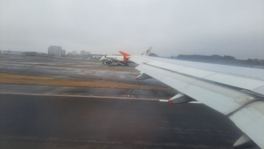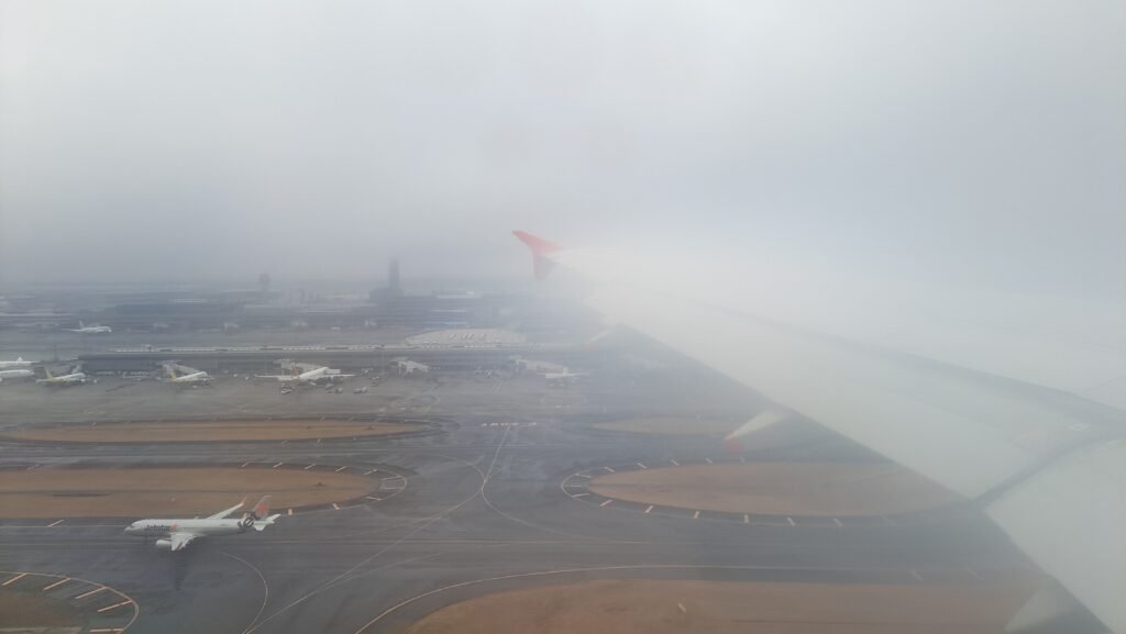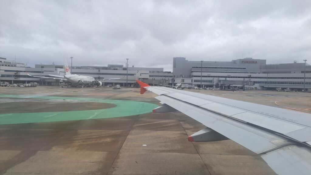 この日は福岡空港の混雑と悪天候の影響で、約1時間遅れのフライトとなった。 今回は仕方のない遅延かと思うが、LCCではJALやANAに比べて遅延しやすいので、多少の遅れを見越して旅程に余裕を持たせることも大事。