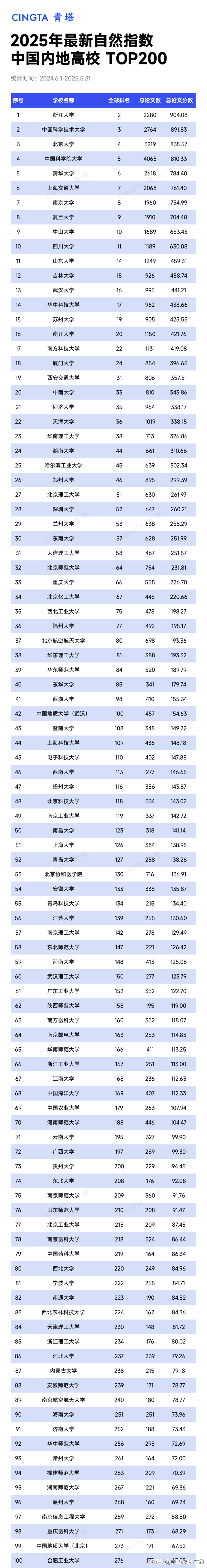 日前,自然指数官网更新了最新的自然指数排名(统计时间节点为2024.6.1-2025.5.31)。最新自然指数排名中,哈佛大学位居全球高校第一,浙江大学位居全球高校第二。