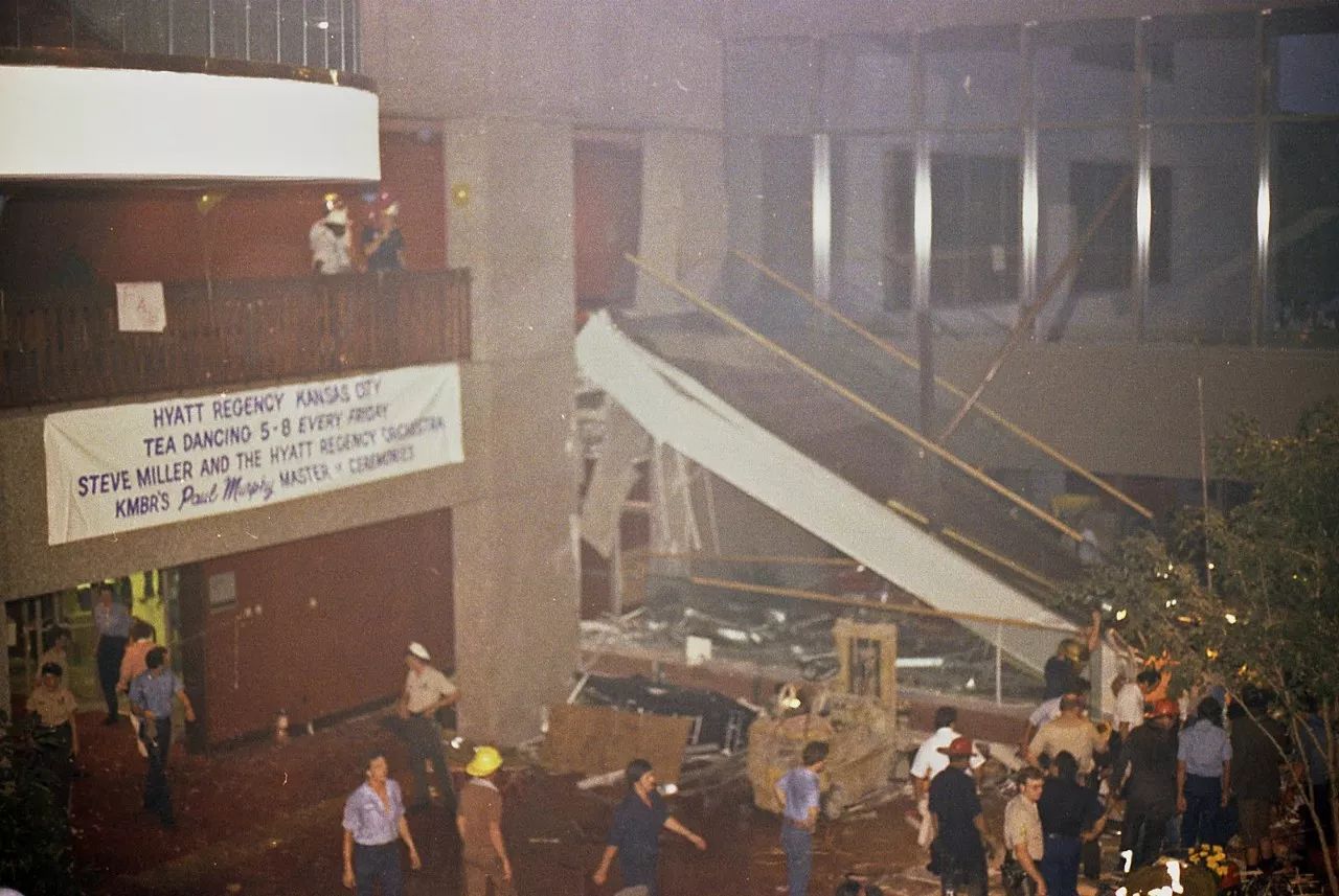 1978年是个特殊的年份,东方的巨龙迎来了今后腾飞的重要里程碑。 而在西方,美国密苏里州的堪萨斯城也将迎来一个富强的绝佳机遇。 这座以牲畜、农产品贸易文明的城市刚刚通过了一项再开发计划,义无反顾地奔向现代化都市的光鲜。 规划中,一座鹤立鸡群象征着堪萨斯城门面的凯悦酒店甚是惹眼。 这座酒店共40层,高达153.62米,恰好超过了美国摩天大楼的高度标准线(152米)。 显然,当局者认为摩天大楼是评判一个城市发达程度的一个重要指标。 为了能让这座投资巨大的摩天大楼在密苏里州建筑高度榜首赖着的时间更长些,工程方决定采用一种颇为前卫的方案—— 设计与施工并行 。 在催稿和改方案的扯皮中,五星级的凯悦酒店完工了,历时不到两年半,堪称效率。 为了配合当局齐心协力摆脱堪萨斯城 “牛城” 的俗号,设计公司G.C.E交出了他们最惊艳的作品。 40层高楼的底层连接着一个巨大的外延中庭,几乎在所有非承载的部位都装上了玻璃。 通透的玻璃天花顶,靓丽的玻璃墙,最亮眼的还要数那三条吊着的空中走廊。 空中走廊由主体建筑的一至三层连出,错落地通向中庭一侧的尽头。 这恐怕是G.C.E最得意的杰作,虽然这三条走廊并没有什么实用功能,但它就像是工艺品底下旋转的展台那样不可或缺。 但凡上去走过一趟的人都会惊叹整个玻璃中庭绝伦的效果。 三条悬吊的空中走廊没有浪费底层一丝的空间,也几乎不会遮挡任何光线,足以惊艳“牛城”之外。 1980年7月1日,凯悦酒店开张的大吉之日,密苏里州的曾经的最高建筑往下挤出了个位子,供奉着这个新晋的王者。 豪华、气派、顶级,参加开张仪式的贵宾们想不出更美妙的辞藻来形容这个象征“牛城”腾飞的建筑了。 五星级的凯悦酒店在一片赞美声中风光地运营了一年,前来光临的顾客络绎不绝。 酒店运营方趁着一周年之际举办了一次颇有情调的茶舞*会,地点就在那个无比令人骄傲的中庭。 *注:茶舞,Tea Dance,起源于十九世纪英国的夏秋乡村花园排队,最初在下午茶期间举办,当时凯悦酒店举办的是1940年代风格的茶舞会。 为了宣传此次的茶舞会,提高酒店的知名度,运营方还特地请来了当地电视台的记者拍摄报道。 没想到凯悦酒店不但成名了,还创下了一个20年后才被世贸中心双子塔打破的全美记录。 连全程跟进报道的报社也沾光获得了普利策新闻奖。 只是这一切并不是靠圆满成功的活动赢来的,而是以114人死亡114人受伤的事故丑闻换来的。 ____________ 7月17日晚6时,酒店的中庭涌入了将近1500人。 他们有的带着舞伴只为享受片刻欢乐,有的冲着丰盛的晚宴点心而来,也有只为一杯马提尼的贵宾。 人们在这场茶舞会中尽情畅饮狂欢,待到爵士乐响起他们便毫不突兀地摇摆起身体。 也有三两恬静的伴侣不愿在舞池中过度失态,他们更爱登高望远,宁静地欣赏着这片欢声笑语。 三条悬空的观光走廊是完美的瞭望台,早已被不少无缘参与的早鸟占领。 每一层的走廊上都站着15到20个左右的观光客。 爵士乐队在卖力地演奏,舞者在畅想着舞会后夜生活的下半场,记者在帮摄像师更换电池。 这个时刻,突然传出几声怪异的“砰砰”声,只见四层的走廊中部开始下陷! 短短不到十秒钟,仿佛受到了爆破一般,四层走廊带着正下方的二层走廊一道化作了一堆建筑垃圾。 遇难的不仅仅是在走廊上观光的行人,还有在中庭跳舞的数百人。 重达60吨的碎玻璃、钢材、混凝土混合成了一座巨大的墓碑,将百余人埋葬在这座豪华的酒店。 祸不单行,坍塌的建筑材料将酒店的水管砸开了,自来水以每分钟一吨的速度向外喷涌。 即使是在五星级的酒店,这些无辜的人也从来未曾想过受到的灾遇也如此豪华。 12分钟之后,救援队火速赶到现场,用工程车辆推倒了截流的大门,水位才逐渐下降。 救援持续了近10个小时,凌晨4点半,最后一位双腿脱臼的生还者被救出。 根据最终的统计,共有29人被救出,111人当场死亡,114人受伤,其中3人不治身亡。 创下了当时工程结构灾难的记录,直到20年后911恐怖袭击发生后才让出了宝座。 无数遇难者的家属悲痛万分地涌向酒店讨说法,却被告知内部调查已经展开,请耐心等待。 可是家属们和公众等不了那么久,惊慌与愤怒不是“等待”二字能平息的。 上帝说要有光,于是便有了光;民众说要有真相,于是便有人开始调查。 堪萨斯当地的一家媒体《堪萨斯城星报》揽下重任,展开了秘密的非官方调查。 报社雇佣了结构工程师做卧底,伪装成记者进入事故现场寻找真相,但只被允许在废墟30米外观察。 幸好报社想得周全,准备了超长焦镜头,拍下了事故现场的蛛丝马迹。 从现场拍回的照片中,工程师立马就发现了症结所在,天花板上依旧梆硬的数根吊杆泣诉着它们的无辜。 这些吊杆同时承受着四层和二层走廊的重量,作为受力最大部件之一它们依旧坚挺。 显然,作为另一个关键的部位,吊杆与走廊连接处就摆脱不了嫌疑了。 可是该如何求证这个猜想呢? 很简单,像凯悦酒店这样的摩天大楼必须经过市政的审核,一定会存有备案的设计图纸。 这位颇有黑客潜质的结构工程师运用了某些社会工程学手段搞到了酒店中庭的原始设计图纸。 图纸上走廊的设计分明是用长达14米的吊杆同时吊起两层的走廊,可现场的吊杆绝对达不到这个长度。 似乎只有一个可能,那就是施工出了偏差。 但随后公布的官方调查